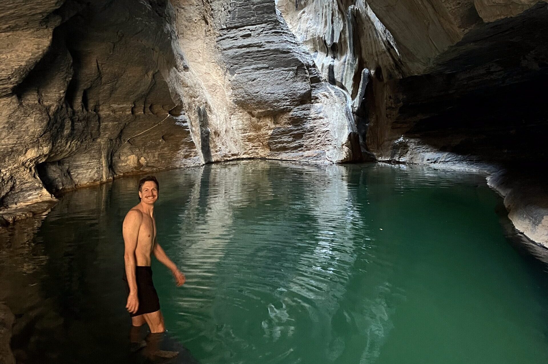 Despite all the construction, some genuinely beautiful places remain if you’re willing to explore a little. We spotted several turtles in the water, which felt really special, and did a short hike along the cliffs around Bandar Al Khairan Viewpoint — a stunning area with best views over turquoise bays.